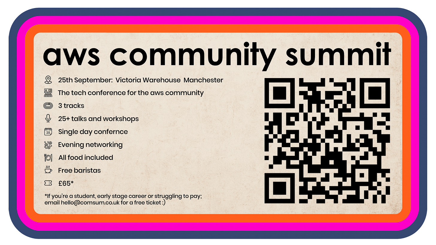If you’re interested in meeting our vibrant, friendly community (which by reading this you’re already a part of!) then grab a ticket now using the code ‘AWSCQ’ for £15 off when you checkout.